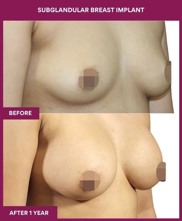 Sub Glandular Breast Implant Before and After Photos