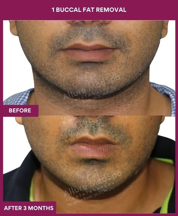Ans. The buccal fat removed during surgery does not return. However, significant weight gain may still affect the overall facial appearance.