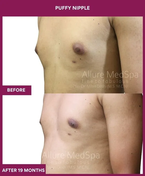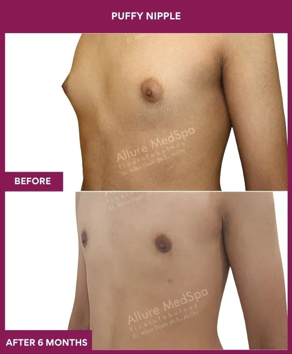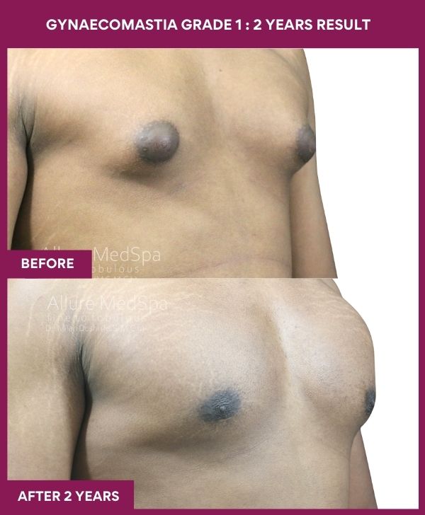 Cosmetic surgeon, Dr. Milan Doshi at Allure Medspa in Mumbai does gynecomastia surgery as daycare surgery. He does male breast reduction under local anesthesia, where he combines advanced Laser and Vaser liposuction with gland excision, it is practically bloodless, painless, stitch-less male boobs reduction surgery. It gives  scarless recovery and permanent male breast reduction result.
